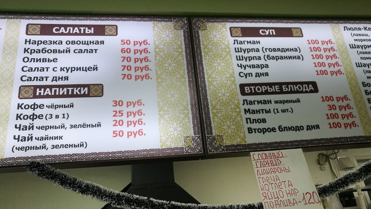 - Shashlyk - Juicy skewers of marinated meat, available in lamb, pork, and chicken, starting at just RUB 160.